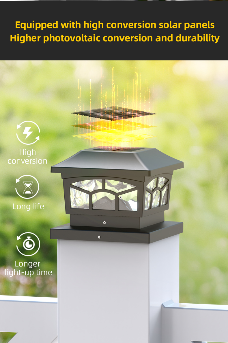 Landsigns 8 LED Solar Post Cap Light Outdoor Waterproof Lights har et intelligent lysfølsomt system, utendørs sterkt vanntett og enkelt å installere, egnet for hagedekorasjon, hage, etc.
