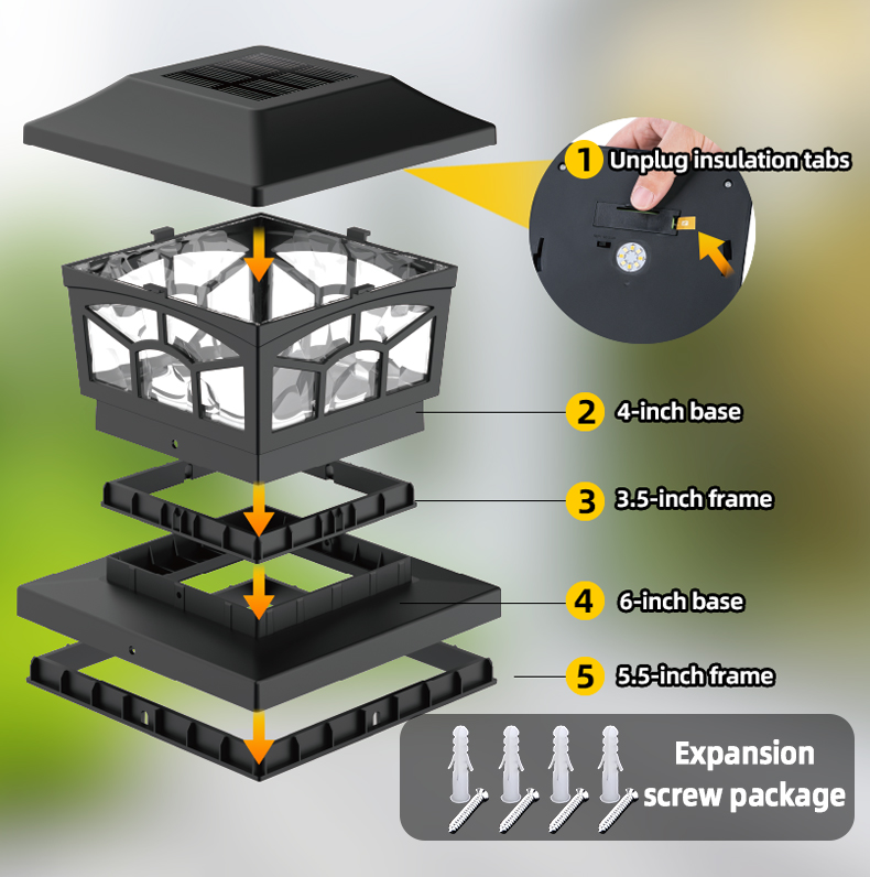 4.Enkel installasjon, Solcellevegglampen utendørs kan monteres på veggen med medfølgende skruer på sekunder, ingen kabel eller ledning nødvendig.