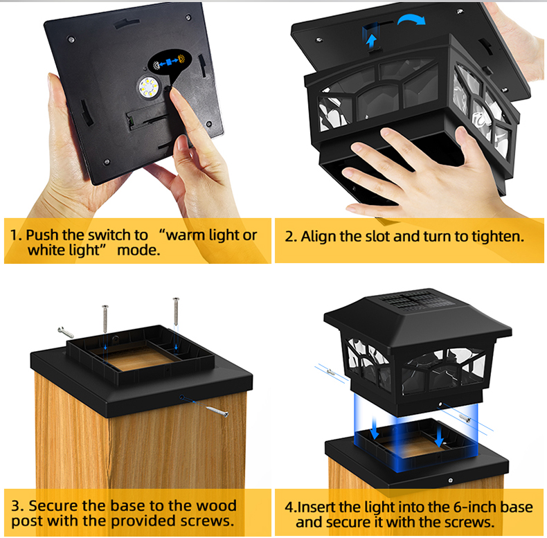 4.Enkel installasjon, Solcellevegglampen utendørs kan monteres på veggen med medfølgende skruer på sekunder, ingen kabel eller ledning nødvendig.